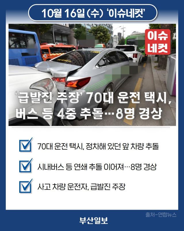 4. '급발진 주장' 70대 운전 택시, 시내버스 등 4 중추돌…8명 경상