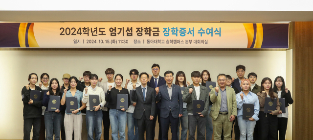 동아대학교(총장 이해우)는 15일 승학캠퍼스 대회의실에서 ‘2024학년도 엄기섭 장학금 수여식’을 개최했다. 동아대 제공