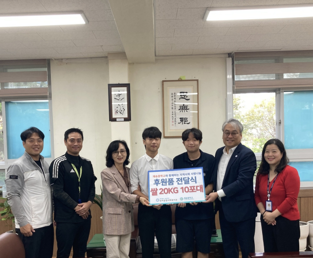 재송중 학생들은 최근 열린 교내대회에서 받은 상금 50만 원으로 쌀 20kg 10포대(총 200kg)를 구입해 반여종합사회복지관에 전달했다.