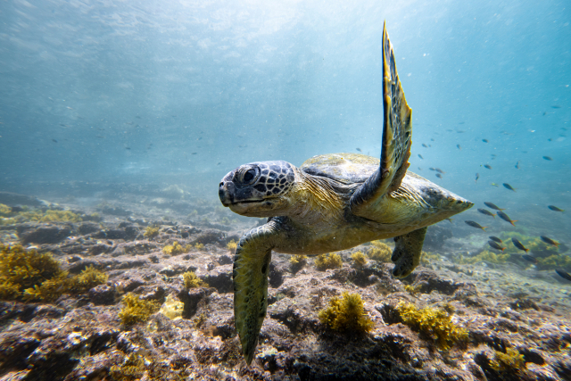 에콰도르 갈라파고스의 이사벨라섬 근처에서 발견된 푸른바다거북. 그린피스 제공