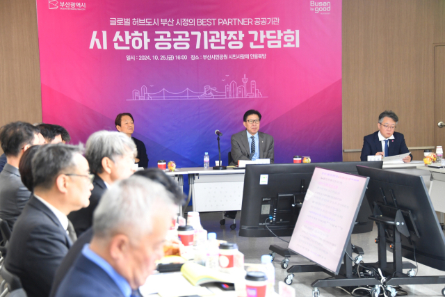 부산시는 지난 25일 부산시민공원 시민사랑채에서 박형준 부산시장 주재로 ‘시 산하 공공기관장 간담회’를 갖고, 공공기관의 효율적인 운영방안을 논의했다. 이 자리에는 부산교통공사 등 시 산하 5개 공기업과 16개 출자·출연기관장 등이 참석했다.
