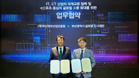 부산정보산업진흥원(원장 김태열)은 10월 29일 부산이스포츠경기장(브레나)에서 부산글로벌도시재단(대표이사 전용우)과 IT·CT 산업의 국제교류 협력 및 e스포츠 중심의 글로벌 소통 확대를 위한 업무협약을 체결했다고 밝혔다.