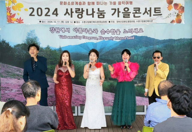 재부산강원도청장년회(회장 안정태)는 최근 수영구장애인복지관 옥상정원에서 소외계층을 위한 ‘사랑나눔 가을콘서트’를 가졌다.