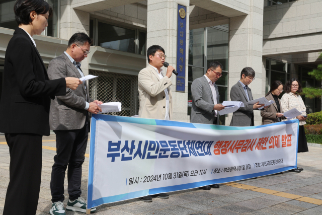 부산경실련과 부산환경운동연합, 부산민예총 등 부산시민운동단체연대가 31일 오전 부산시청 광장에서 부산시의회 행정사무감사에 대응해 제안 의제를 발표했다.