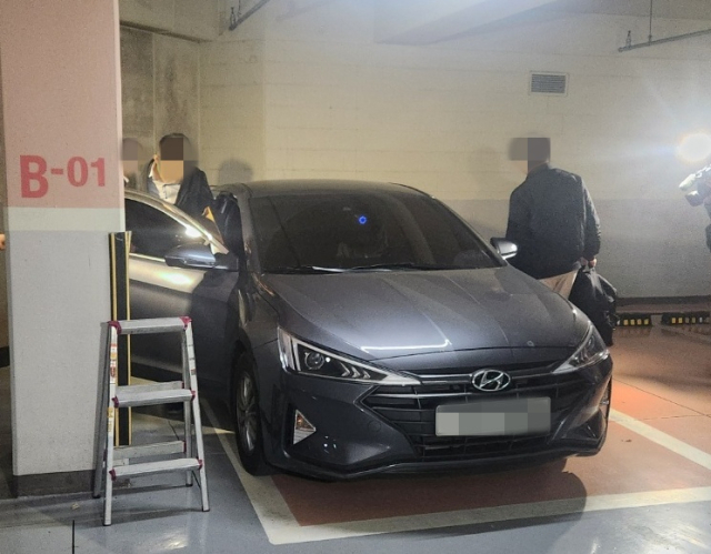 31일 오후 창원지검 관계자들이 명태균 씨 자택 압수수색을 마친 뒤 명 씨 거주 아파트 지하에서 차량에 탑승하는 모습. 강대한 기자