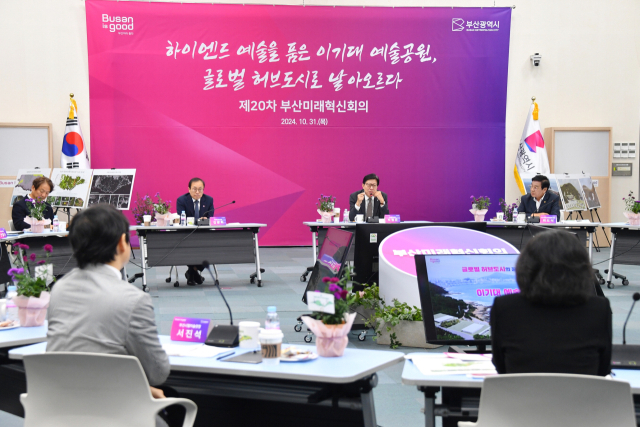 31일 부산시청 대회의실에서 열린 제20차 미래혁신회의에서 박형준 부산시장이 ‘이기대 예술공원 명소화’ 정책을 논의하고 있다. 부산시 제공