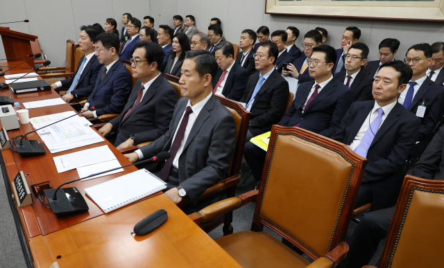 1일 국회에서 열린 운영위원회의 대통령비서실과 국가안보실, 대통령 경호처 대상 국정감사에서 정진석 비서실장 등이 의원 질의를 경청하고 있다. 연합뉴스