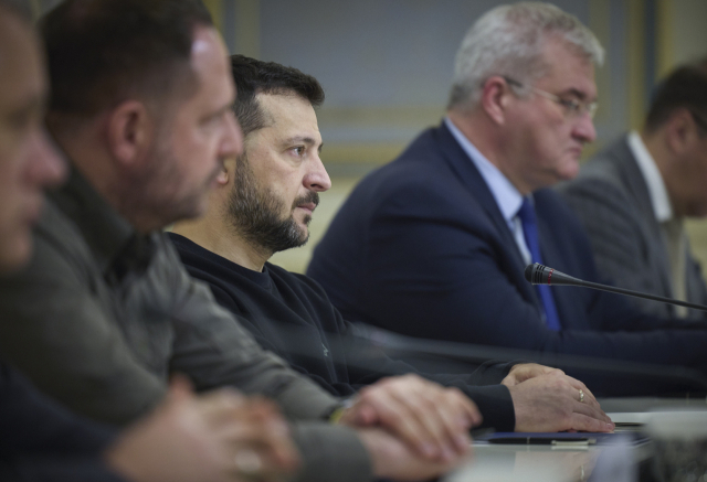 볼로디미르 젤렌스키 우크라이나 대통령이 4일(현지시간) 키이우에서 열린 독일 외무장관 회담에 참석해 있다. EPA연합뉴스