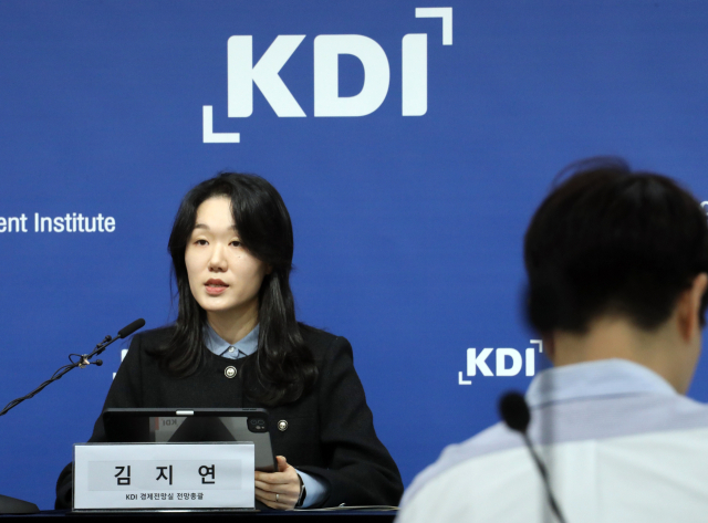 한국개발연구원(KDI) 김지연 전망총괄이 29일 오전 정부세종청사에서 KDI 현안분석 '온라인 소비 확대가 물가와 고용에 미치는 영향'을 발표하고 있다. 연합뉴스