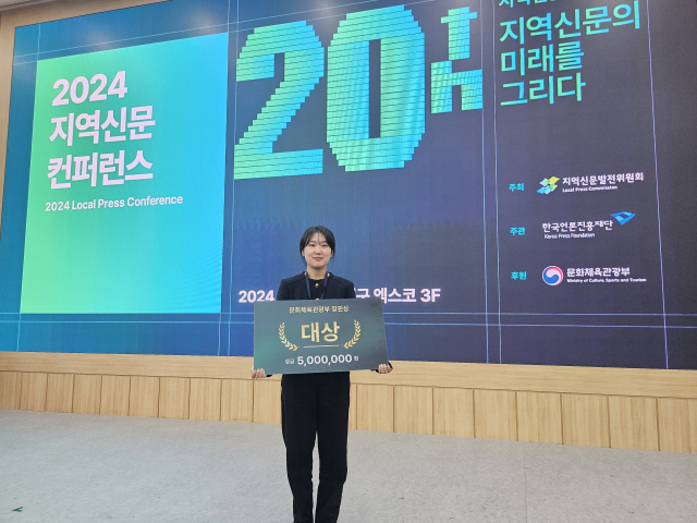 8일 대구 북구 엑스코에서 열린 ‘2024 지역신문 컨퍼런스’에서 <부산일보>의 ‘연결 프로젝트-고립의 꼭짓점 무연을 잇다’가 대상(문화체육장관부장관상)을 수상했다.