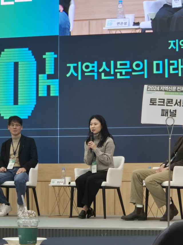2024 지역신문 컨퍼런스의 토크콘서트에 토론자로 참여한 사회부 변은샘 기자가 “지역신문법의 지역취재 지원사업으로 좋은 기획을 많이 하고 여러 상도 수상할 수 있었다”고 말했다.