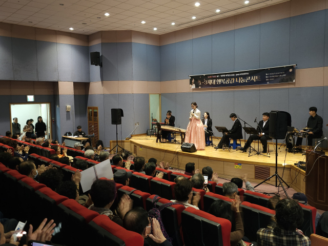 부산 동래구(구청장 장준용)는 지난 6일 부산힘찬병원 대강당에서 어르신 200명을 초대해 ‘1-3세대 행복공감 나눔 콘서트’를 개최했다.