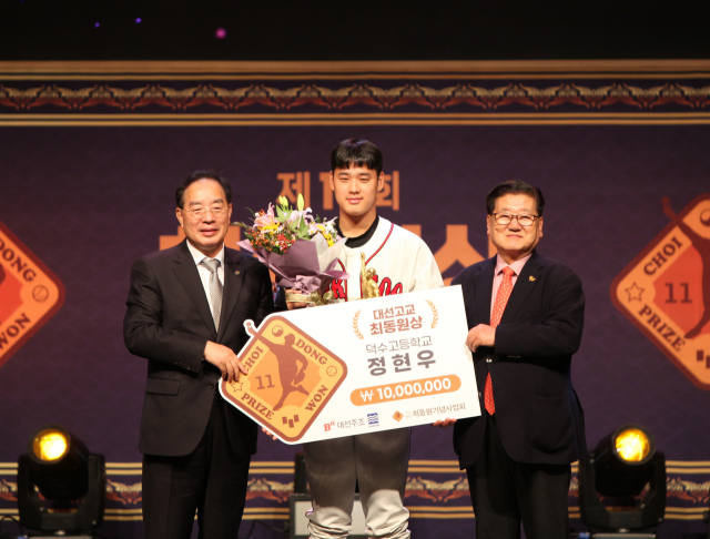 대선주조는 11일 부산은행 본점 강당에서 열린 제11회 최동원상 시상식에서 ‘제7회 대선 고교 최동원상’ 수상자 정현우와 소속 학교 덕수고 야구부에 총상금 1000만 원을 전달했다고 밝혔다.