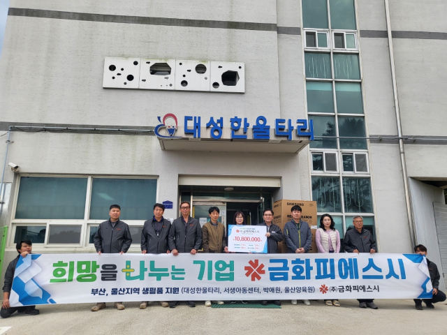 (주)금화피에스시(대표 김경태) 새울1정비사업소는 지난 7일 사회 소외계층인 기장군 대성한울타리와 울주군 서생아동센터, 박애원, 울산양육원 등 4곳에 총 1080만 원 상당의 생필품을 전달하고 사회 공헌 활동을 벌였다.