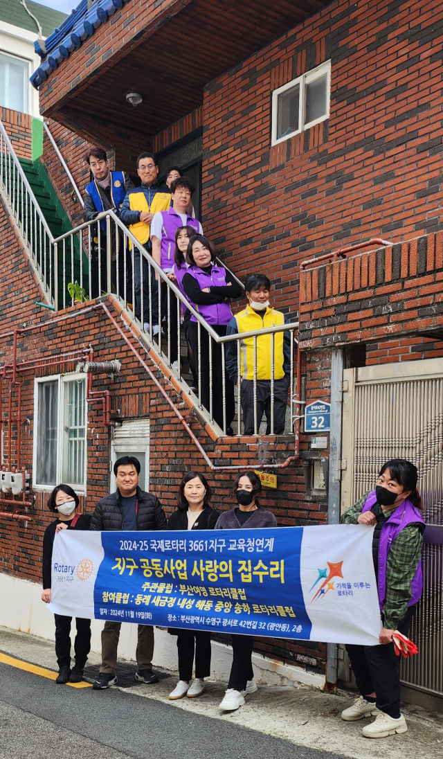국제로타리 3661지구 5지역(대표 손예진)은 19일 부산 동래·내성·해동·중앙·새금정·여명·송하로타리클럽 회원과 합동으로 수영초등학교 한 학생 집에 화장실 변기 교체, LED등 교체 등 사랑의 집수리 봉사 활동을 했다.