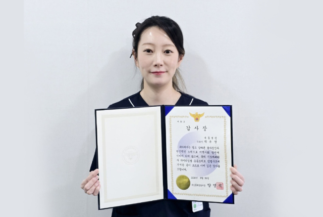 기도가 막혀 의식을 잃은 노인을 재빠른 대처로 구조한 박유영 대동병원 책임간호사가 부산동래경찰서로부터 감사장을 받았다.