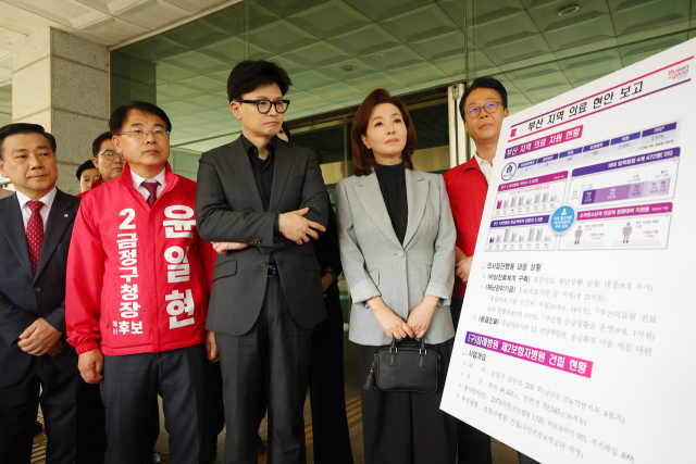 지난달 치러진 부산 금정구청장 보궐선거 유세 과정에서 국민의힘 한동훈 대표와 더불어민주당 의료대란대책특별위원회가 각각 금정구 옛 침례병원을 찾아 지역의 의료 현안에 대해 보고 받고 있다. 연합뉴스