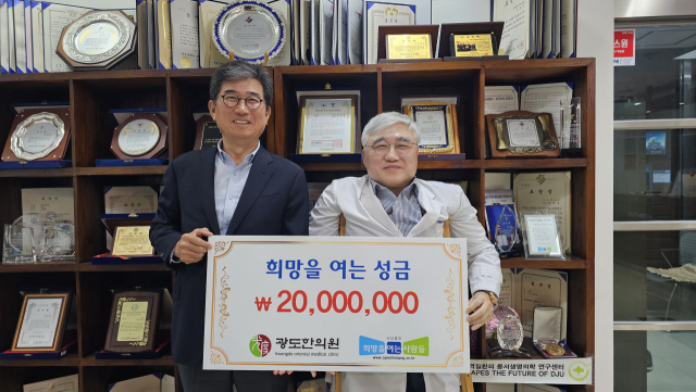 강병령 광도한의원 대표원장은 최근 지역의 소외된 환경에서 생활하는 아이들을 위해 2000만 원의 성금을 (사)희망을여는사람들(이사장 손명찬)에 전달하며 약정식을 가졌다. 이는 지난해에 이어 두 번째 성금이다.
