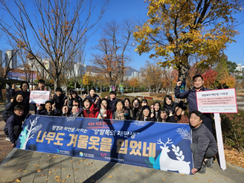 한편 부산글로벌빌리지 자원봉사캠프(캠프장 강혜령)는 올해 7월부터 산업폐기물인 양말목을 활용하여 교보증권(주), KTcs 기업봉사단과 함께 나무옷 만들기 활동을 이어왔다.
