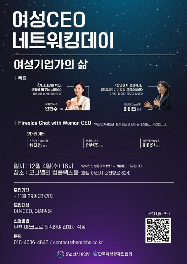 이번 행사의 참가신청은 오는 29일까지 가능하며, 세부 내용은 한국여성경제인협회와 여성기업종합정보포털 홈페이지에서 확인할 수 있다.
