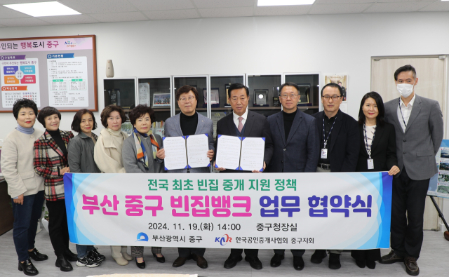 부산 중구(구청장 최진봉)는 지난 19일 한국공인중개사협회 중구지회와 빈집 중개 지원 정책 수행을 위한 업무협약을 맺고, 내년 1월부터 전국 최초로 ‘빈집 뱅크’ 사업을 시행한다고 밝혔다.