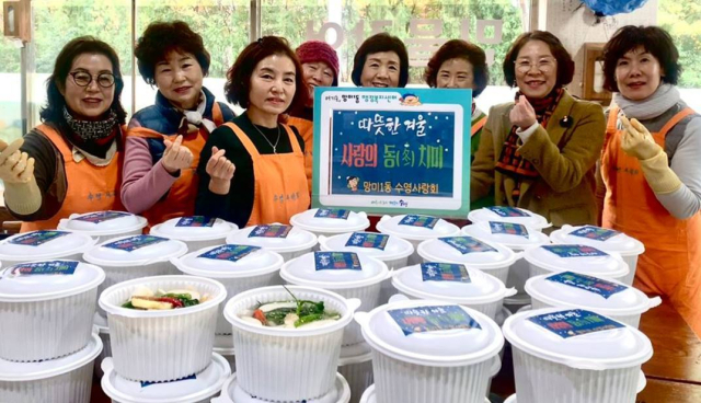 부산 수영구 망미1동(동장 정명숙)은 지난달 26일 수영사랑회(회장 심경숙) 주관으로 취약계층 50세대에 동치미를 지원했다.