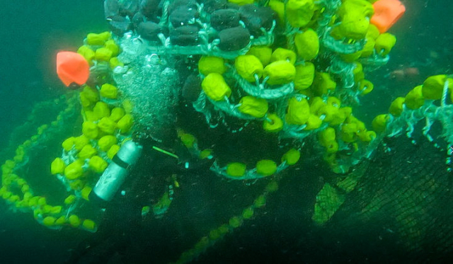 제주 해상에서 침몰한 135금성호 실종자 수색 작업을 펼치고 있는 해경이 수중에 산재한 사고 어선 그물에서 수색을 벌이고 있다. 제주지방해양경찰청 제공
