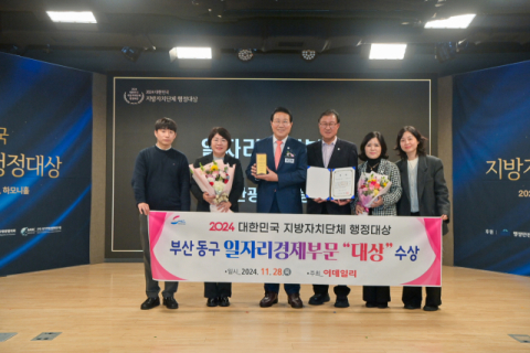 부산 동구(구청장 김진홍)는 지난 28일 서울 중구 KG타워 하모니홀에서 개최된 ‘2024 대한민국 지방자치단체 행정대상 시상식’에서 ‘일자리경제부문 대상’을 수상했다고 밝혔다.