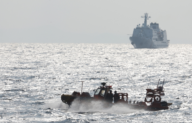 부산 선적 대형 선망 금성호 침몰사고 닷새째인 13일 오전 제주 비양도 북서쪽 22㎞ 사고해역에서 해경 등이 실종자 수색작업을 하고 있다. 연합뉴스