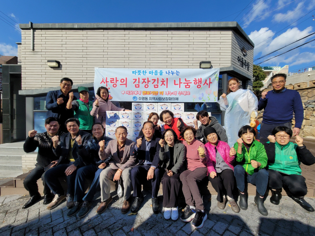 부산 수영구 지역사회보장협의체(위원장 서진태)는 지난달 28일 김장김치 나눔 행사를 갖고 저소득 취약계층 100세대에 전달했다.