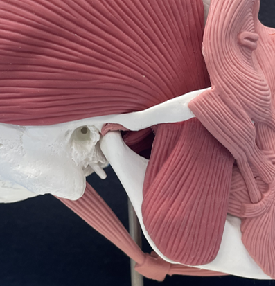 턱관절 모형. 턱관절은 귀 앞에 있는 관절로, 머리와 직접 단단히 연결된 게 아니라 근육과 인대로 고정되어 있다. 부산대치과병원 제공