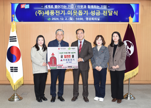 부산 사상구 세풍전기(대표 전종열)가 지난 2일 사상구(구청장 조병길)에 이웃돕기 성금 1000만 원을 기탁했다.