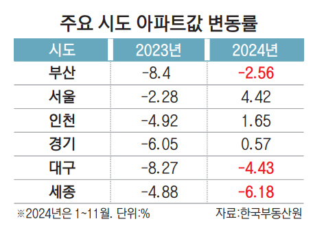 수도권 오를 때, 부산 아파트값 전국 최고 수준 하락
