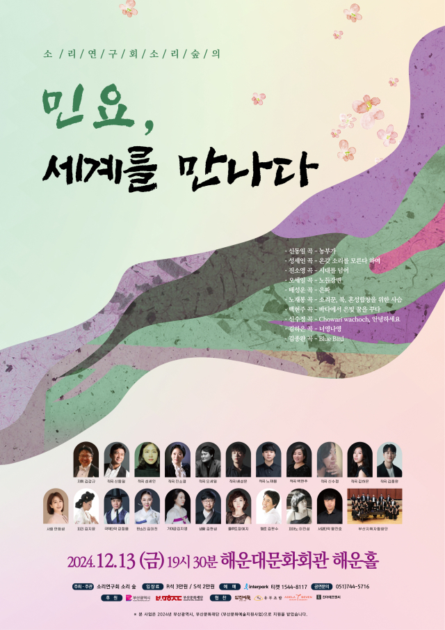 출연 김지윤(피리), 강정용(국악타악), 김미진(판소리), 김지영(가야금), 김현성(생황), 장예지(플루트), 김판수(첼로), 이진성(피아노), 왕진호(서양타악), 부산지휘자합창단. 입장료 R석 2만 원, S석 1만 원. 문의 051-744-5716.
