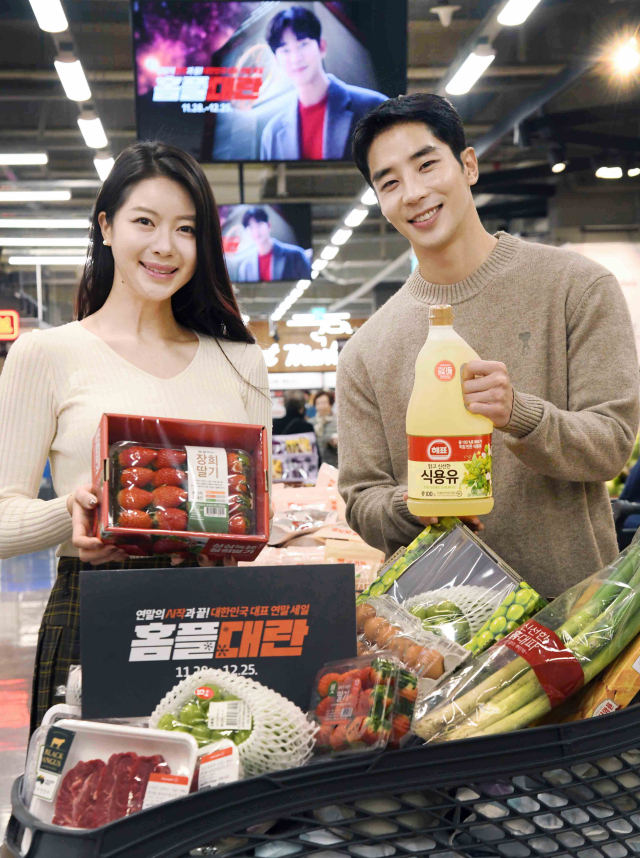 홈플러스가 오는 11일까지 초특가 및 반값 행사 ‘홈플대란’을 진행한다. 모델들이 ‘홈플러스 메가 푸드 마켓 라이브’ 강서점에서 대한민국 대표 연말 세일 홈플대란 2주차 행사 상품을 소개하고 있다. 홈플러스 제공
