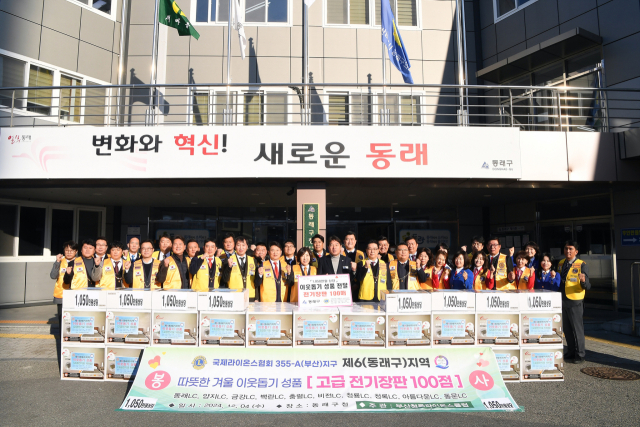 국제라이온스협회355-A(부산)지구 제6지역(동래구)라이온스클럽(위원장 이영림)은 지난 4일 취약계층을 위한 1050만 원 상당의 전기장판 100매를 부산 동래구(구청장 장준용)에 전달했다.