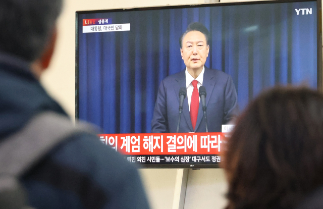 윤석열 대통령이 대국민 담화를 발표한 7일 오전 충북 청주시 흥덕구 가경동 시외버스터미널 대합실에서 시민들이 뉴스를 보고 있다. 연합뉴스