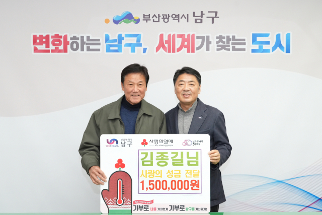 부산 남구 용당동 주민 김종길 씨가 지난 4일 남구(구청장 오은택)에 성금 150만 원을 전달했다.