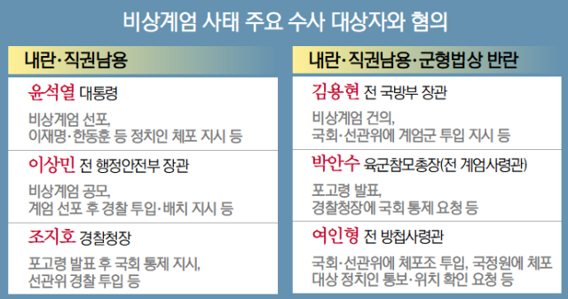 검찰 특별수사본부(특수본)가 ‘12·3 비상계엄 사태’에 대한 본격적인 수사를 진행하면서 수사 대상자와 혐의에 대한 관심이 집중된다. 계엄을 주도한 윤석열 대통령과 이를 건의한 것으로 지목된 김용현 전 국방부 장관, 국회 등에 군대를 투입한 계엄군 지도부와 경찰 등이 대상으로 전망된다.