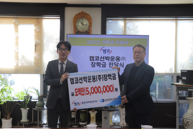 캠코선박운용 주식회사(대표이사 남은우)는 지난 10일 부산해사고등학교에 장학금 500만 원을 전달했다.