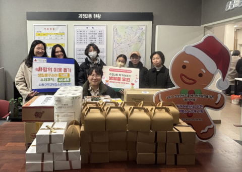 부산시 사하구 학교밖청소년지원센터(센터장 황윤미)는 10일 괴정2동 행정복지센터에 독거어르신을 위한 이웃돕기 성품으로 수제쿠키 및 생필품꾸러미를 전달했다.
