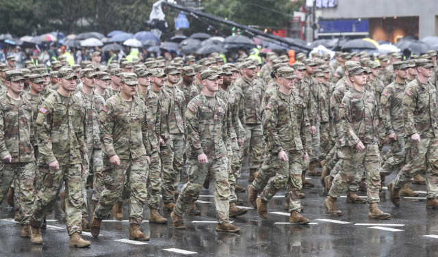 지난해 9월 26일 서울 광화문 광장 인근에서 미 8군 장병들이 국군의날 시가행진하고 있다. 연합뉴스