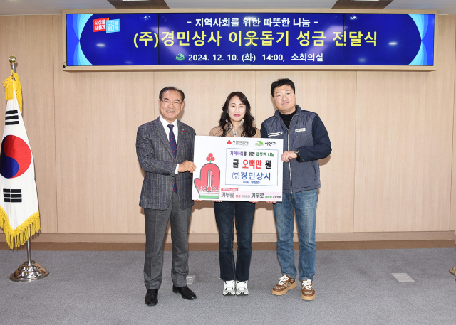 (주)경민상사(대표 황성문)는 지난 10일 부산 사상구(구청장 조병길)에 이웃돕기 성금 500만 원을 기탁했다