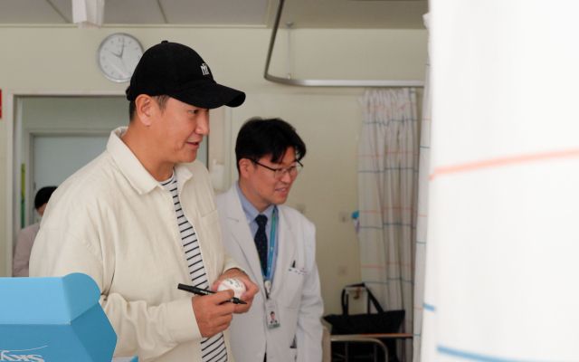이 선수는 이날 직접 사인한 야구공 100개를 들고 소아암 병동을 돌며 환아와 보호자들을 응원했다. 또 소아암 환아들의 치료에 사용해 달라며 500만 원을 기부했다.