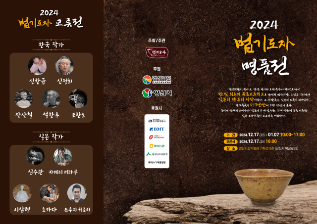 (사)NPO법기도자(이사장 신한균)는 “17일부터 내년 1월 7일까지 양산시립박물관 2층 기획전시실에서 ‘2024 법기도자 명품전(교류전)’이 열린다”고 16일 밝혔다.