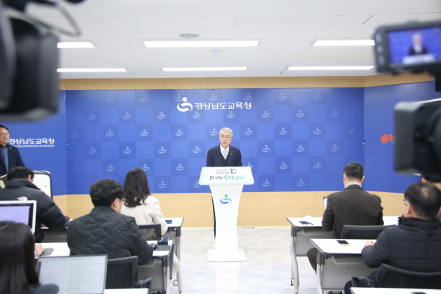 박종훈 경남도교육감이 16일 경남도의회의 내년도 예산삭감과 관련된 기자회견을 하고 있다. 경남도교육청 제공