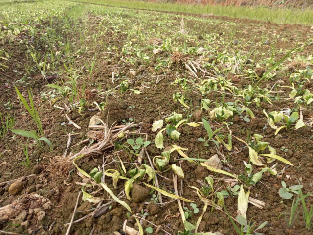 습해 피해가 집중된 논 시금치 중 땅이 낮고 습기가 높은 저습지 시금치 피해가 상대적으로 심했다.