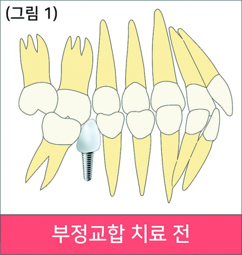 부정교합을 방치하고 임플란트를 진행하면 작고 모양이 이상한 비정상적인 형태의 임플란트를 심을 수밖에 없다. 이런 임플란트는 잇몸 염증에 취약하고, 주변 치아의 잇몸뼈 소실이 빠르게 진행될 수 있어 임플란트 수명이 오래 갈 수 없다. 임플란트 수술 전에 반드시 빠진 치아 주변의 쓰러진 치아를 먼저 세워서 부정교합을 개선해야 안정성을 확보할 수 있다.