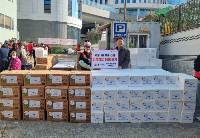 아름다운 동행(회장 라은희)은 지난 7일 부산 동래구(구청장 장준용)에 어려운 이웃을 위해 직접 담근 김장김치 1800포기를 전달했다.