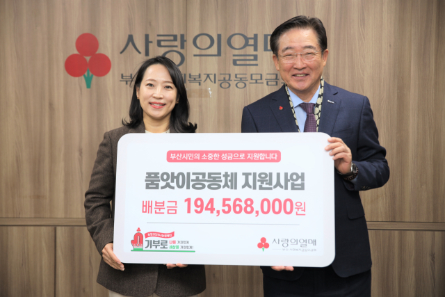 부산사회복지공동모금회(회장 이수태‧부산사랑의열매)는 지난 11일 사랑의열매 대회의실에서 2024년 기획사업 ‘품앗이공동체 운영 거점기관 지원사업’ 배분금 전달식을 진행했다고 밝혔다.